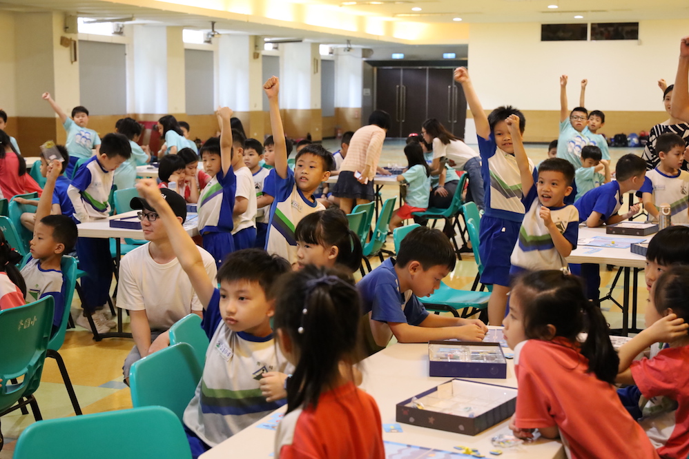 當天共三個班84位小學二年級的孩子們,熱烈討論搶答每一道海霸桌遊的闖關題,阿炮老師詳細為孩子們解說每個題目可能的各種闖關路徑,過程中老師們都發現,孩子們透過遊戲化與競賽方式了解邏輯運算思維的速度,超乎他們的想像。孩子們透過遊戲方式分組競賽答題,激烈搶答過程有孩子沒有回答到還哭了起來,投入程度讓大人小孩都經過難忘又愉快的一天。