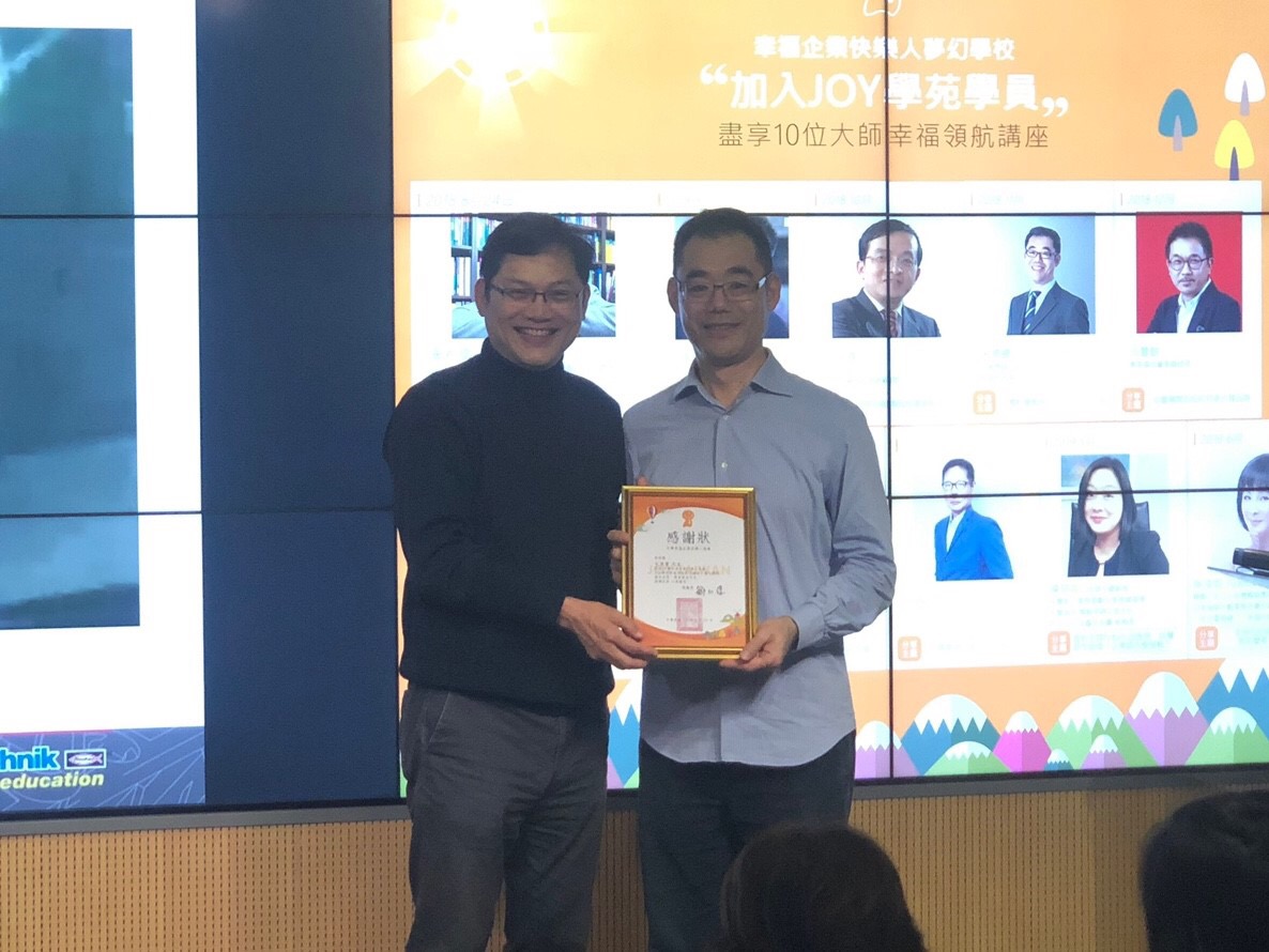 最後,盧希鵬老師為今日精彩且具𣶶遠意義的講座做了兩個結論,第一,台灣的教育都是坐在教室裡教育,而坐在教室裡的教育通常都是為了要控制預測不確定性,但是透過德震老師今日談到的例子,我們必須要學習與不確定性共處,因為這個世界上有太多的不確定性不能夠控制,這也是工業4.0的精神。我們的人生、我們的教育,除了去控制預測不確定性之外,我們應該去享受以及跟這些不確定性互動。第二,盧老師引用芝加哥心理學系Csikszentmihalyi教授對快樂的定義,「快樂就是找到一個小挑戰,然後你去克服它」,以及藝人林志玲的生日感言「快樂不是一種性格,而是一種能力」,指出從德震老師的教學可以看到,他有能力把一個複雜的東西讓孩子們快樂,孩子們也漸漸開始學習這個能力,能夠在這無聊的coding裡頭得到自己快樂。盧老師亦期許所有JOY學苑的學員,也要培養這種能力,在很無聊的地方,找到一些快樂的感覺。