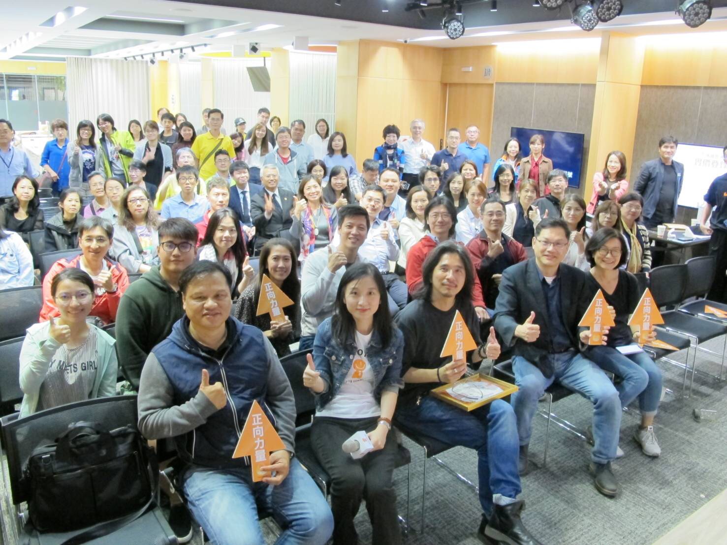 講座尾聲,盧希鵬教授呼應葉丙成的觀點,強調幸福快樂不是在課堂上學來的,而是在生活中實踐來的,而加入幸福企業快樂人協會,就是最好的實踐。