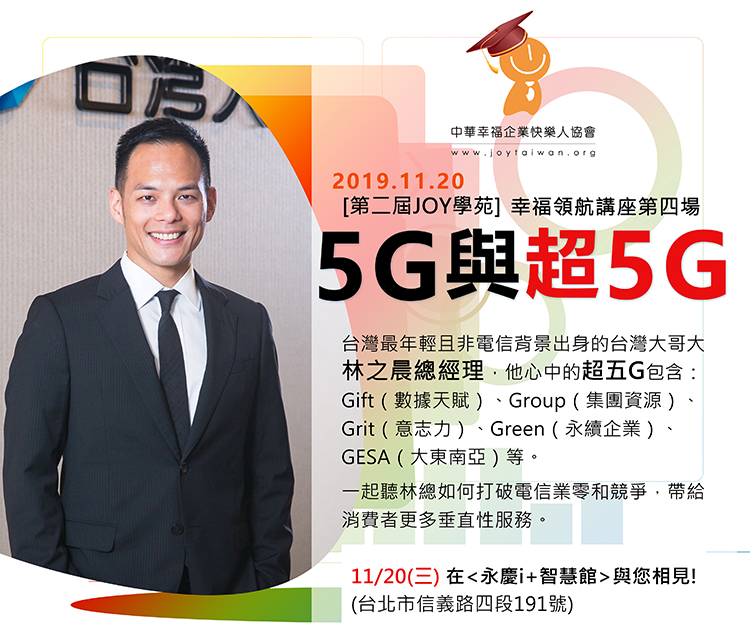 「JOY學苑—幸福領航系列」第2屆第4場-台灣大哥大總經理林之晨主講〈5G與超5G〉