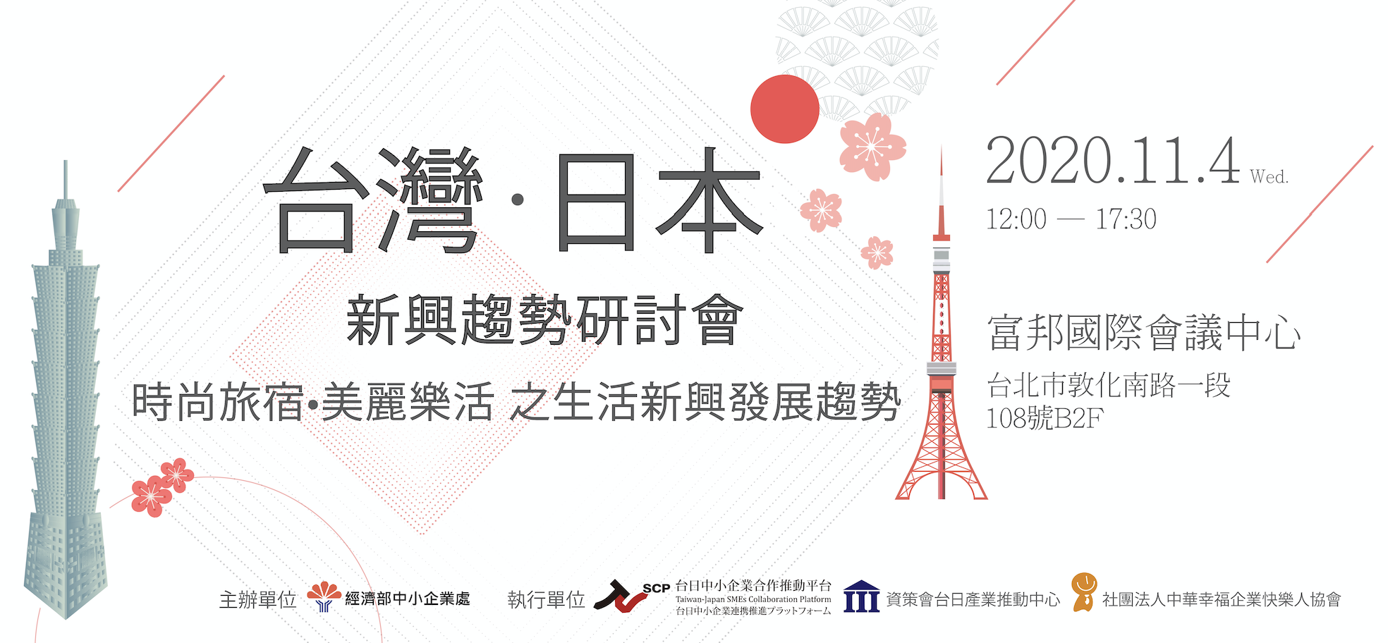 就在即將到來的11/4(三),JOY協會共同辦理一場「台灣•日本 新興趨勢研討會暨綜合商談會」,重點主題為「時尚旅宿•美麗樂活 之生活新興發展趨勢」,若您本身或企業對於 台日商業交流 或 時尚旅宿X美麗樂活 等議題感興趣,都誠摯歡迎來共襄盛舉這場台日交流新興趨勢研討商談會。